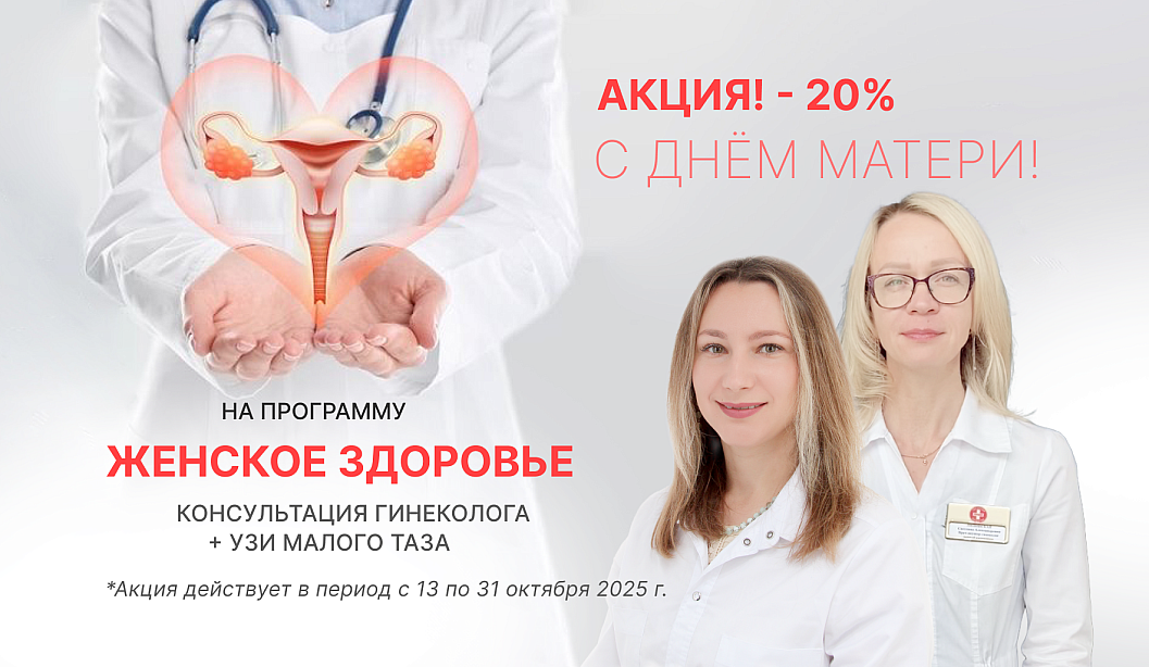 В честь «Дня матери» и в знак заботы о прекрасной половине человечества, ЛОДЭ объявляет специальную акцию на важный гинекологический комплекс "Женское здоровье" – консультация гинеколога + УЗИ органов малого таза со скидкой 20%.
