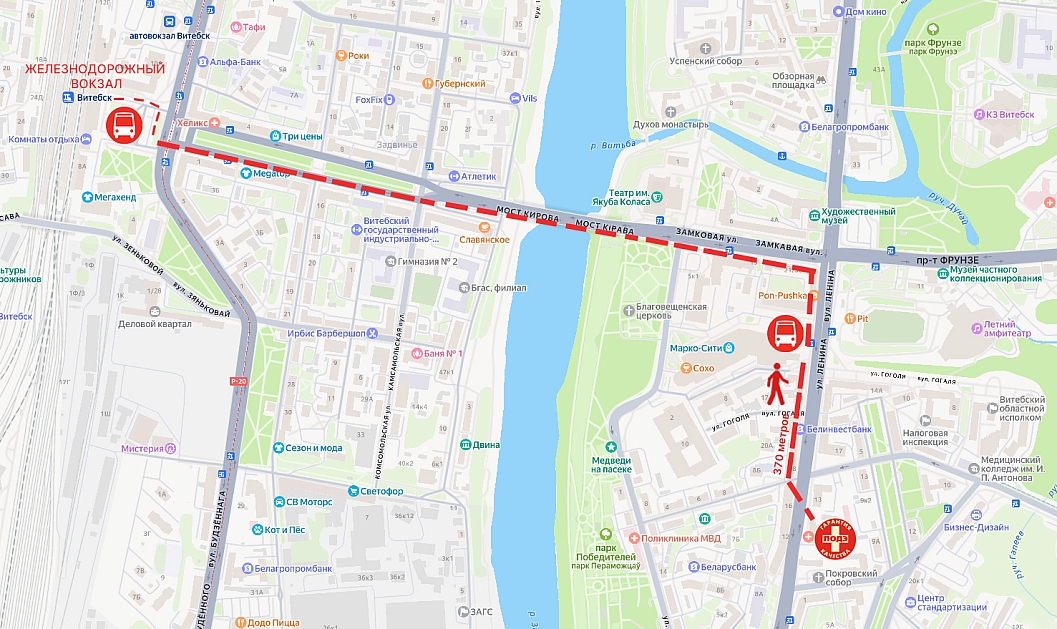 Схема проезда от железнодорожного вокзала до медицинского центра ЛОДЭ